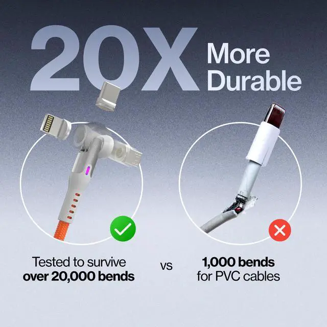 All Your Devices: 360 Pro includes three magnetic cable tips compatible with Apple products, USB-C, and Micro USB devices. Also comes with a USB-A adapter, making it adaptable for any charging situation. ^^ 2 Times Stronger