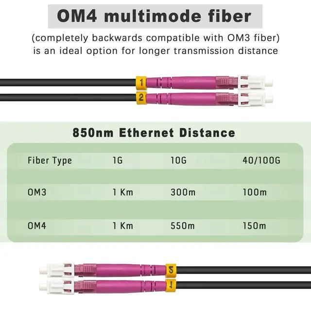 OM4 fiber is completely backwards compatible with OM3 fiber. OM4 was developed specifically for VSCEL laser transmission and allows 10 Gig/s link distances of up to 550m compared to 300M with OM3. ^^ Armored OM4 LC