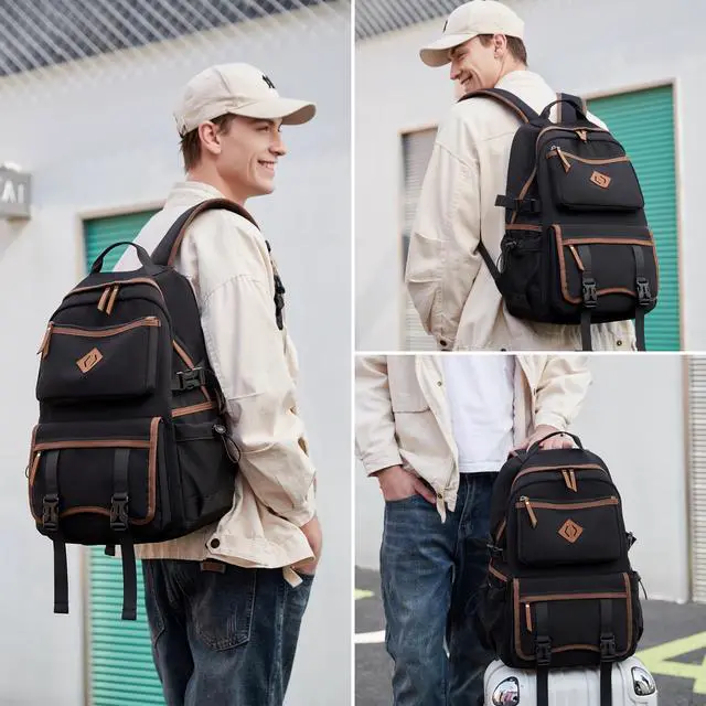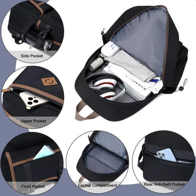 Multi-compartments & Large Capacity: The fashion unisex adult daypack has 5 separate different size pockets, and two side pockets meet your daily storage. The front three pockets can hold charge device and other small items, convenient for your daily organization. The main pocket of includes laptop padded sleeve with tool pocket to provide roomy space for necessities. The hidden zipper pockets on the back keep your valuables safe from theft. ^^ For Any Ages & OccasionThe water resistant backpacking purse is stylish enough for casual and school use, while the design provides the multi functionality. Stylish multipurpose backpack perfect for young teenager, adults. The basic practical knapsack for most of your needs, easy to match your cloths, suitable for sports, hiking, camping, short trip, work, shopping, university, school, etc.