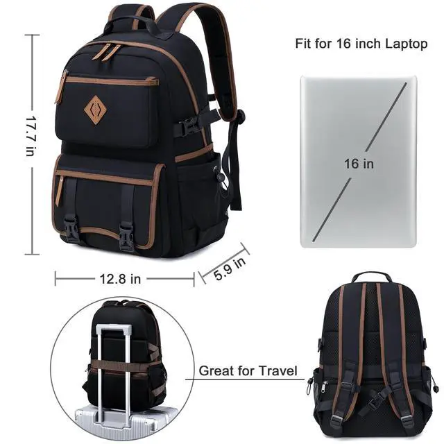 Size & Design: The size of back packs is 12.2" x 6.3" x 17.8" (L*W*H), Weight: 1.55 LB. The work business laptop backpack with padded compartment sleeve fit for 13.3, 15.6, 16.1 inch tablet. This computer laptops bag also along with genuine leather brand logo and zipper puller makes the bags more fashionable and unique ^^ Waterproof