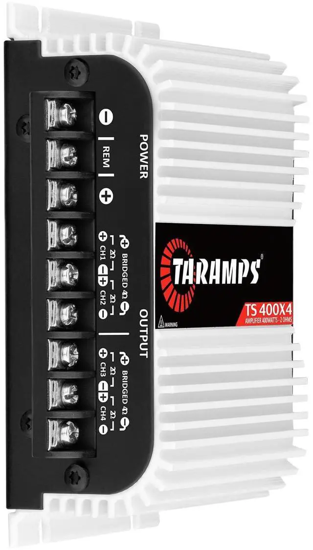 The Taramps TS line has Multichannel amplifiers, being Full Range amplifiers with 4 channels, and are also amplifiers with high power and cost-benefit ^^ The TS 400x4 has 400 Watts RMS at 2 Ohms. As a versatile multichannel amplifier, this powerful amplifier offers the flexibility of bridged connections ^^ This multichannel amplifier features 4 channels with 100 Watts RMS each (400 watts RMS total) and also with LED indicator and short-circuit protection ^^ This multichannel amplifier features 4 channels with 100 Watts RMS each (400 watts RMS total) and also with LED indicator and short-circuit protection ^^ Perfect for various car audio setups, this perfect amplifier comes equipped with a fixed Crossover, and a precise Gain Control.