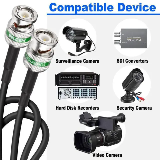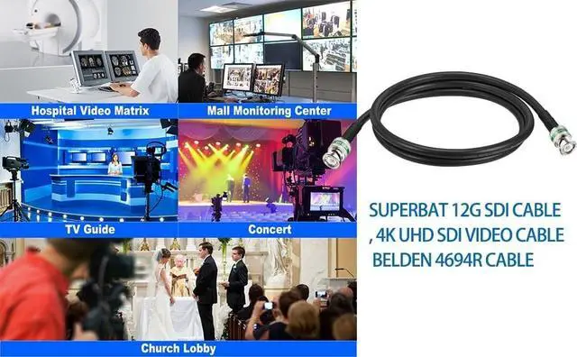 Package list: 1pcs SDI cable ^^ BELDEN 4694R PRECISION SERIAL DIGITAL VIDEO COAXIAL CABLE: 18 AWG Solid Silvered Copper Conductor, PE Insulation, Foil + 95% Tinned Copper Braid Shield, PVC Jacket, CMR ^^ This is a cable specially made for 12G SDI CABLE, which is good for transmission between broadcast camera and high-speed replay camera. ^^ Shielded bnc coaxial cable support 12 Gbit/s, 4K@60Hz resolution. The 4K UHD Coax 12G sdi cable is suitable for professional