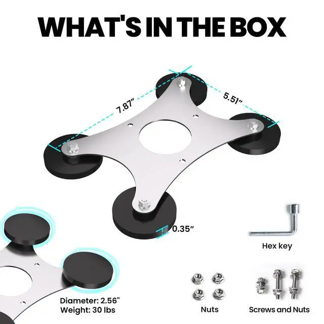 Starlink Mini New Bracket (Model: SPX-04176000-501). This Starlink Mini magnetic mount features 4 ultra-strong rubber-coated magnets, each with a massive 30 lbs ( 13.6 kg) pull force and a total holding strength of 120 lbs. It ensures your Starlink Mini New Bracket stays firmly attached to the steel roof of any vehicle during use, with reliable magnetic stability. ^^ Durable 304 Stainless Steel Construction As a high-quality Starlink Mini mount, it is crafted with a premium 304 stainless steel base, giving the mount superior rust and corrosion resistance. It can withstand harsh conditions such as rain, snow, and salty marine environments, ensuring structural stability and reliable performance during long-term use. ^^ Tool-Included & Easy Installation No drilling or permanent adhesion required! The kit of this magnetic Starlink Mini mount includes a dedicated hex key for quick and easy installation. Simply place the mount on the vehicle's steel roof to complete the connection and use; it is also easy to remove and store when not in use, with no complicated operations. ^^ Universal for Mobile Use This starlink mini car mount is designed for mobile scenarios, perfectly suited for cars, RVs, trucks, and boats with ferrous metal surfaces.