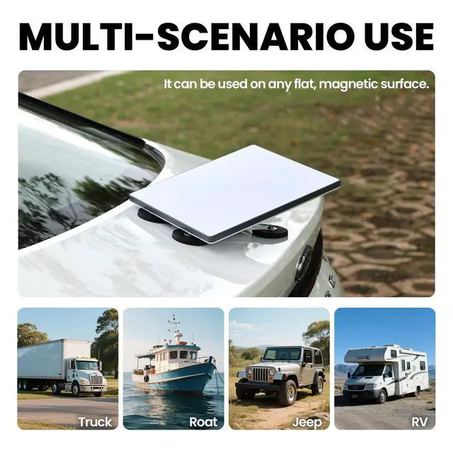 For optimal safety, when used externally, it is recommended to only when the vehicle is stationary or moving at low speeds, balancing practicality and safety. ^^ Protective & Stable Design Whether used as a Starlink Mini mount or a magnetic-specific version, each magnet of the mount is equipped with a thick rubber coating, which can effectively prevent scratches and protect the vehicle's paintwork. Its robust structure provides a stable base for Starlink Mini, helping maintain a consistent signal in various travel scenarios to meet usage needs.