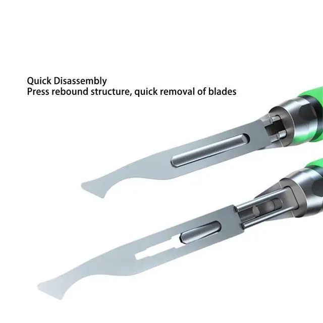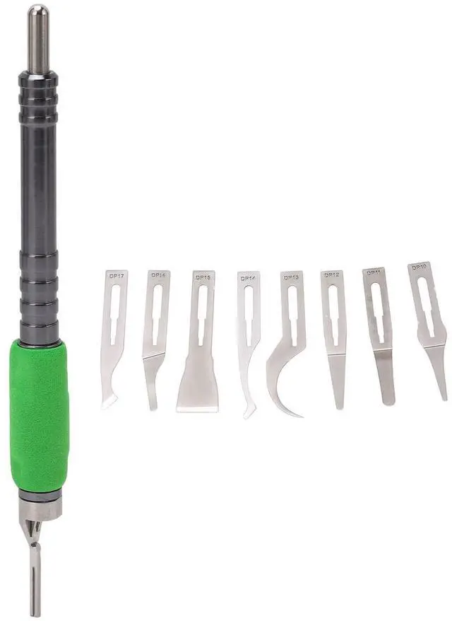 [WIDE APPLICATION] Ideal for various electronics repair tasks, this knife set is for power supply, chip repair, CPU glue removal, strip removal, glue removal, and adhesive cutting. ^^ [VERSATILE GLUE REMOVAL] Featuring a press design, the knife offers a comfortable grip for efficient glue removal, making your repair work easier and more enjoyable. ^^ [8 BLADE SET] Equipped with high carbon steel blades, this set includes 8 ultra-thin blades suitable for different scenarios, compatible with blade, ensuring versatility in usage. ^^ [HIGH CARBON STEEL BLADES] Crafted with high carbon steel, these blades maintain their shape, exhibit excellent toughness, and resist wear and for long-lasting durability.