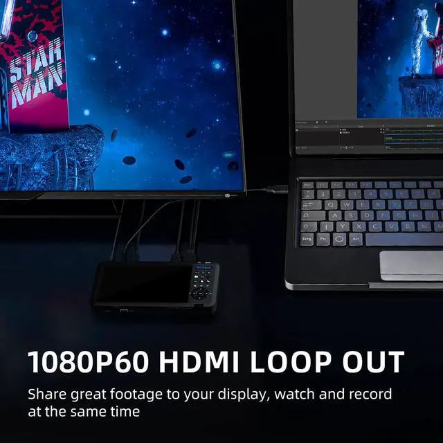 ^^ Wide Compatibility and Versatility This device can connect to a computer via USB to capture and record video without requiring driver installation, ensuring plug-and-play functionality. It is widely compatible with third-party software, enabling seamless integration into your workflow. Additionally, it supports HDMI loop-out display, allowing you to monitor your recordings in real-time. ^^ Battery-Powered for Enhanced Flexibility Supports battery power supply, making it perfect for outdoor use or situations where power outlets are unavailable. It is compatible with F550, F750, F970, and other batteries (sold separately).