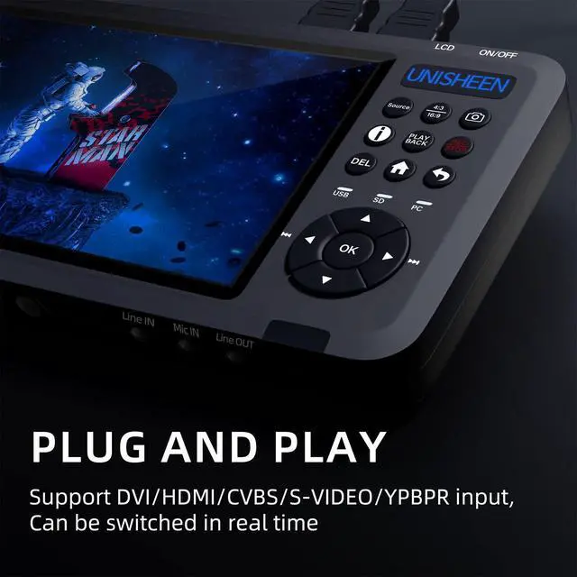 With one-click start/stop recording, the installation process is simplified for plug-and-play convenience. The built-in 7-inch preview LCD allows you to view and monitor your recordings in real-time, making it ideal for both beginners and professionals. ^^ Compact and Portable Design The recorder is lightweight and portable, making it easy to carry and suitable for a wide range of applications, including education, live streaming, video conferencing, sports events, weddings, parties, and church activities. It also includes remote control functionality, allowing you to start, stop, or pause recordings from different locations, ensuring safe and convenient operation even in challenging environments.