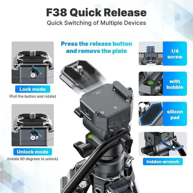 Multiple Devices: Fluid head with F38 quick release plate, which can be efficiently switched between different devices such as tripods, ordinary gimbals, and slide rails by falcam f38 quick release system ^^ Smooth & Flexible