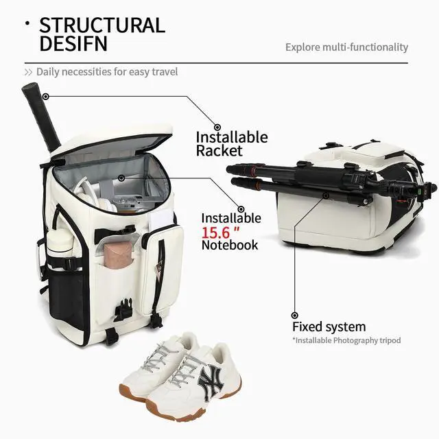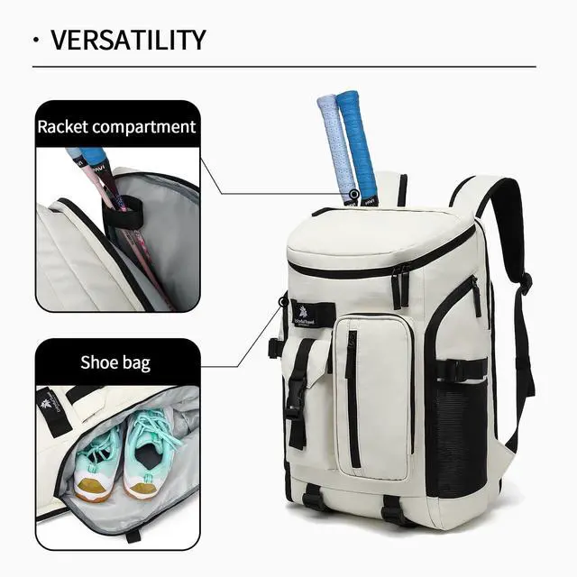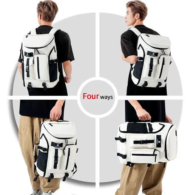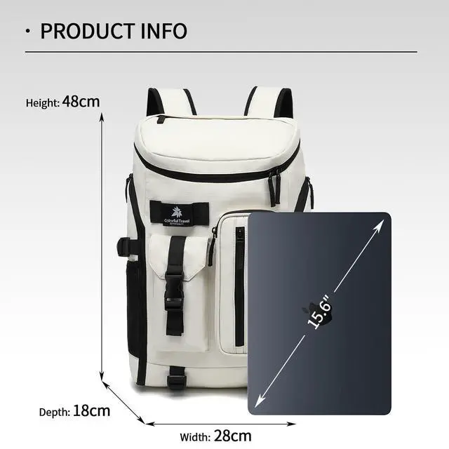 Dimensions28 x 18x 48cm (L x W x H). Lightweight, only 1.98LB. ^^ Large Capacity Roomy Space with practical pockets provides you enough items storage and helps you organize them easily, including 1 front pocket/1 main large compartment/2 side pockets (for bottle and umbrella) /1 shoe compartment. The main compartment contains 1 upper mesh zip pocket, 1 notebook compartment, 2 zip pockets, and 2 slots, can hold your iPhone, iPad, pen, keys, wallet, magazine, clothes, and also be placed in cameras, power bank, etc.