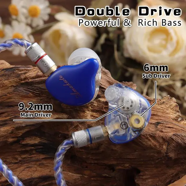 Professional-Grade Dual Drivers In Ear Monitor Experience studio-level sound with 9.2 mm dynamic + 6mm bass drivers that deliver balanced highs, mids, and lows - perfect for gaming, music production, and critical listening. As premium IEMs for gaming and in-ear monitors, these wired earbuds accurately reproduce spatial cues like footsteps in games while maintaining vocal/instrumental clarity. ^^ Ergonomic MMCX Design & Memory Wire for All-Day Comfort The detachable MMCX connector rotates 360 for anatomical fit, combined with form-fitting memory wire that keeps in-ear headphones securely positioned during intense activities. Engineered for stage performers and streamers using iem earphones 6+ hours daily.