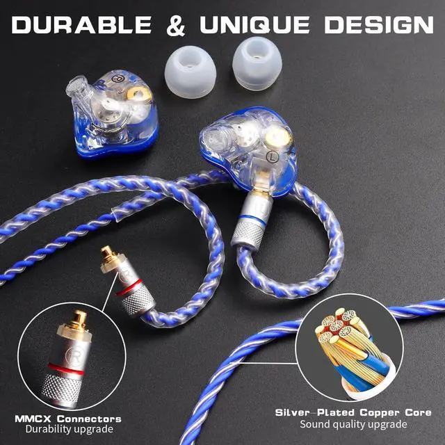 ^^ Premium 4N Silver-Plated OFC Cable Superior to standard wired headphones, our silver-plated oxygen-free copper (4N OFC) core ensures < 0.5 impedance. The ultra-flexible headphones wired construction prevents kinking while delivering zero-latency audio - critical for in ear monitors in competitive gaming. ^^ Triple Noise-Isolating Silicone Ear Tips Included Three pairs of medical-grade silicone tips (S/M/L) create personalized noise isolation, blocking up to 26dB ambient noise. Whether using these iem earbuds for FPS gaming or live monitoring, enjoy 100% focus on authentic soundscapes. ^^ Military-Grade Durability for Professionals Rigorously tested earbuds wired structure survives 15, 000+ MMCX connection cycles.