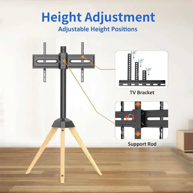 Portable Solution: The black TV stand features a weighted tripod base with non-slip feet for stability, yet remains light enough for easy relocation when needed. An anti-tip pull cord provides added safety, ideal for dynamic living spaces or homes with children ^^