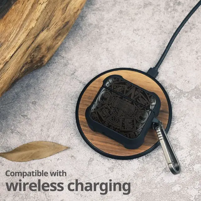 Carveit Wooden Case for AirPods 4 Case (2024) (USB-C) 4th Generation, Wood Artisan Engraved & TPU Shockproof Cover, Titanium Quick Released Clasp (The Maya Calendar) Blackwood
