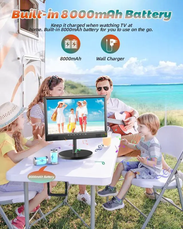 Adjustable Stand & 8000mAh: The inclusion of a built-in adjustable stand and rechargeable in our portable TV not only enhances convenience but also ensures versatile viewing experiences anytime, anywhere. Enjoy your favorite shows and movies effortlessly, whether at home or going camping, with convenience at your fingertips ^^ ATSC