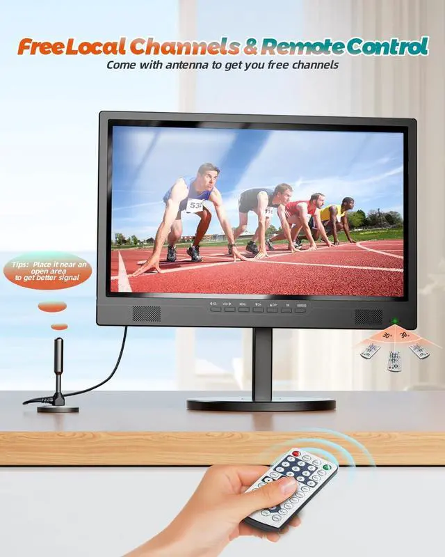 Tuner Reception: Come with antenna, this TV support ATSC mode and can receive over-the-air broadcasts without requiring a cable or satellite subscription. This feature is especially handy in areas with good signal coverage, providing access to local channels and sometimes even additional stations. If you put the antenna in an open area, the signal will be better ^^ 19.2 Inch Large Screen and