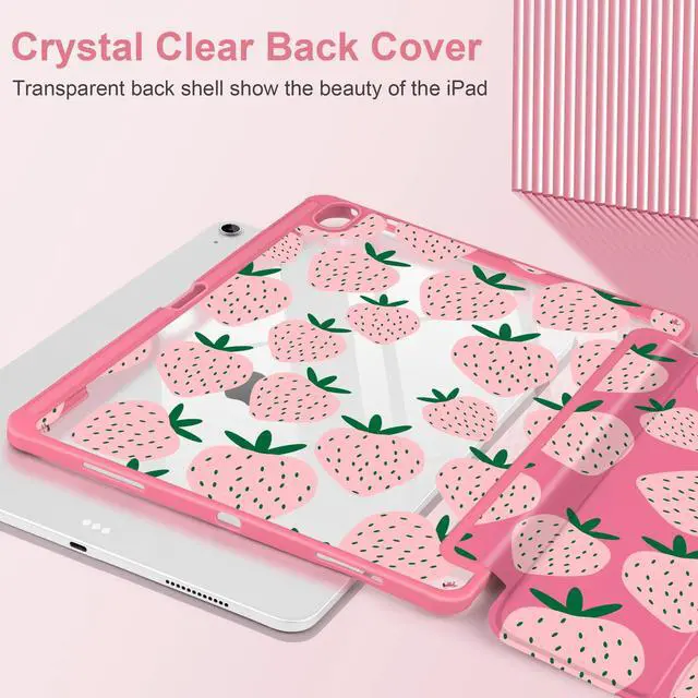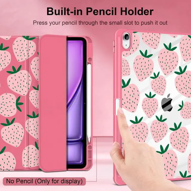 MEEgoodo Case for iPad Air 13 inch 2026(M4) / 2025(M3) / 2024(M2), Tablet Cases with Transparent Acrylic Back Shell, Cover with Pencil Holder + Auto Wake/Sleep + Trifold Stand, Minimalist Strawberry