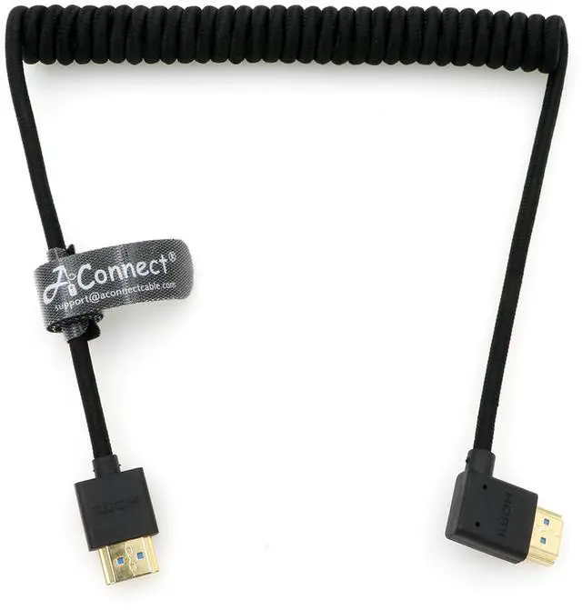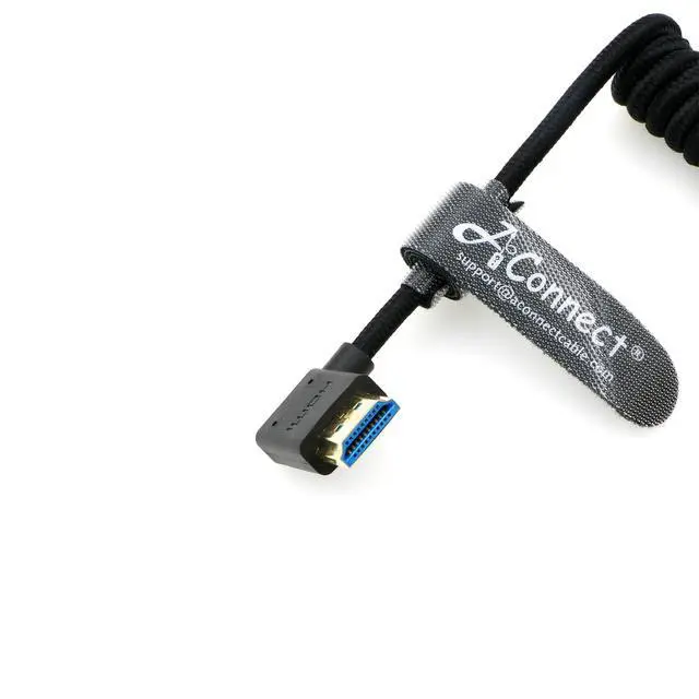 AConnect 8K Coiled HDMI Cable, 8K@60Hz 4K@120Hz 48Gbps HDMI 2.1 Cable, Ultra High-Speed Braided Coiled Cable 18~28" for Atomos Ninja V^^Portkeys BM5 Monitor (Straight to Left Angle)
