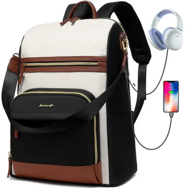 LUOCIP Laptop Backpack Women Travel Bag - 15.6 Inch Convertible Computer Backpack Purse for Nurse Work Waterproof Daypack Anti Theft Bookbag for College