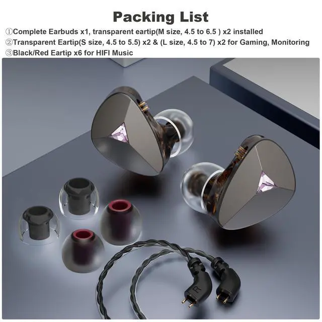 ^^ Ergonomic Design & Noise Isolation The cavity is made based on large data of cochlea. Scientifically molded to fit the ear like a customized in-ear Headphone. Even with vigorous exercise, it will still securely fit in the ear. Comfortable for a long time wearing as well. With the design, it can effectively isolate the noise to 26dB to offer a better experience while enjoying the music. ^^ Secure-fit and Comfortable Fit IEM headphones feature preformed over-ear earhook for a secure fit and keep cables out of the way. With 6 pairs of soft, breathable eartip (in 2 colors and 3 sizes), they ensure optimal comfort and stability while effectively blocking ambient noise for immersive listening.