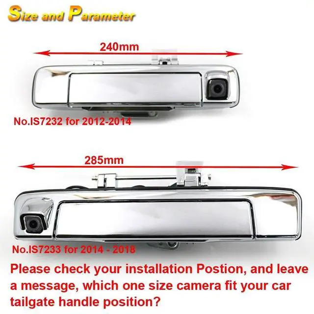 This product could fit all of the following models as expected: Replacement for ISUZU D-MAX DMAX 2012-2014 (chooes IS7232) Replacement for ISUZU D-MAX DMAX 2015-2018 (chooes IS7233) Since the same car model may have differences in different countries, please check the camera size and compare your car's installation carefully to avoid mistakes.