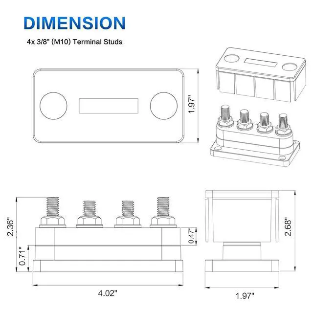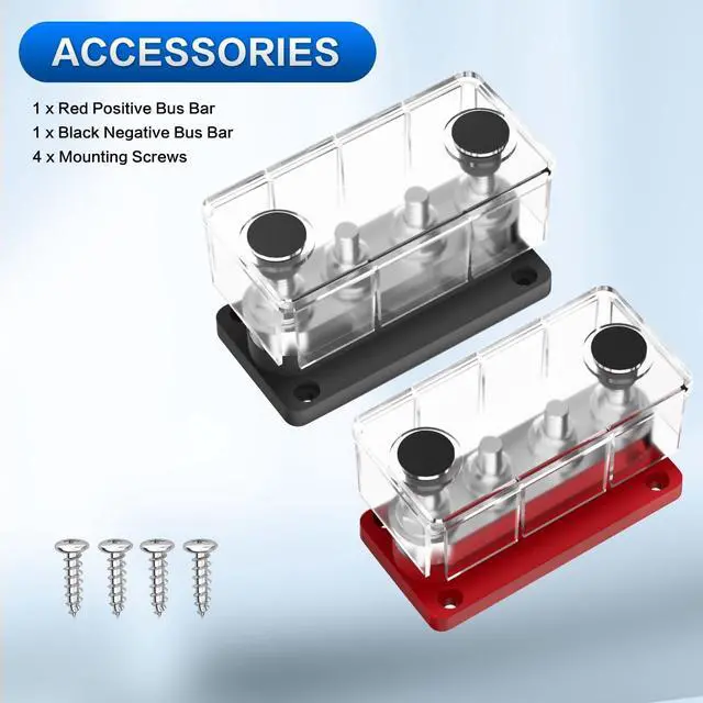 Terminals: Bus bar 12v includes - M10 (3/8") terminal studs x 4, two power bus bars in the package - one positive bus bar and one ground bus bar ^^