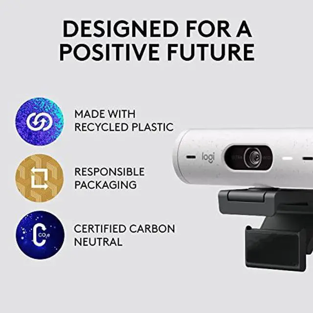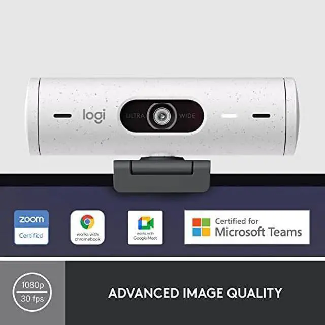 Logitech Brio 500 Full HD Webcam with Auto Light Correction,Show Mode, Dual Noise Reduction Mics, Webcam Privacy Cover, Works with Microsoft Teams, Google Meet, Zoom, USB-C Cable - Off White
