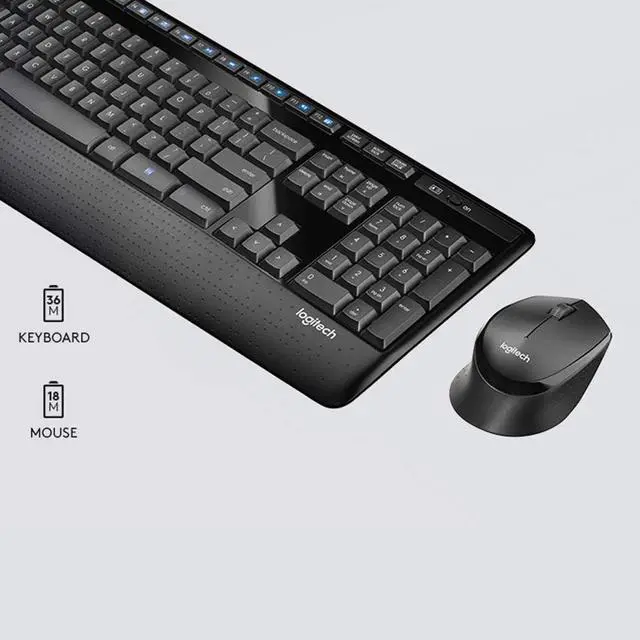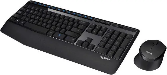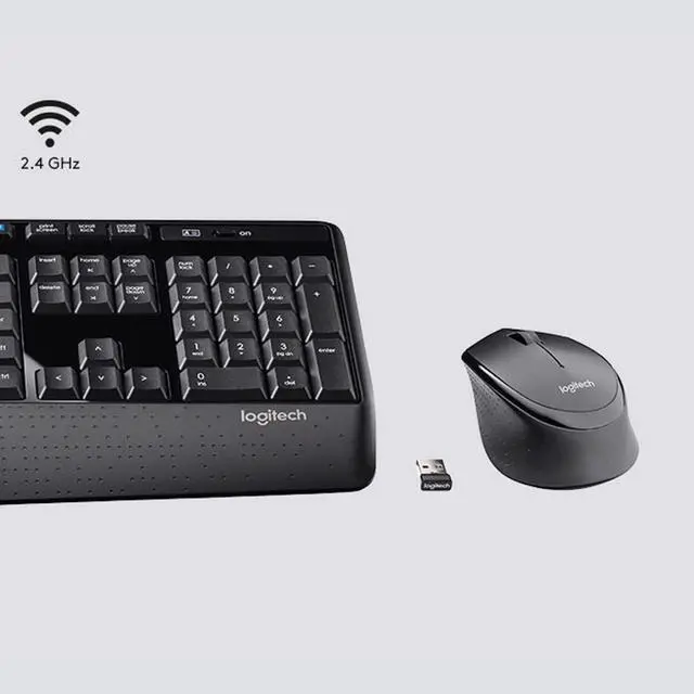The Logitech Wireless Combo MK345 pairs a comfortable full-size keyboard with a right-handed mouse. The keyboard comes with a comfortable and textured palm rest, a spill resistant design*, a glossy finish and a caps lock indicator light. The mouse has a low battery indicator, a large scroll wheel and smooth and precise tracking. Its wireless connectivity gives the reliability of a cord plus wireless convenience and freedom. Its energy efficient engineering delivers 36-month keyboard and 18-month mouse battery life**. 12 especially enhanced F-keys allow you to mute your computer, skip a song or pause a video instantly***.