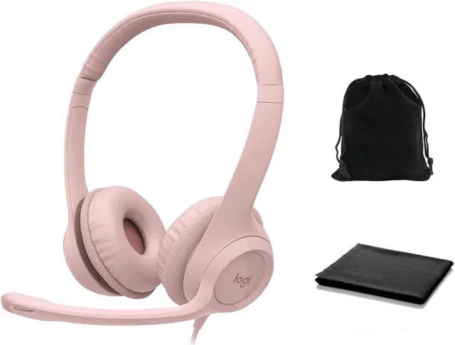 • Logitech Headset H390 Wired Headset with Mic for PC/Laptop, Stereo Headphones with Noise Cancelling Microphone, USB, in-Line Controls, Chromebook, PC Headset, W/Cloth and Pouch, Bulk Packaging (Rose)