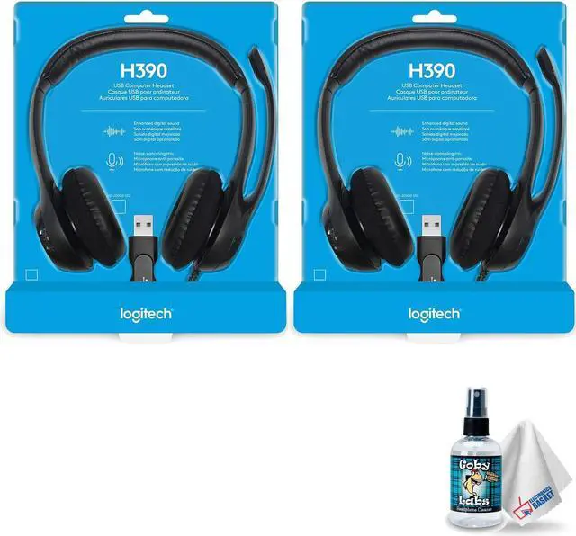 • Logitech USB Headset H390 with Noise Cancelling Microphone - Includes Headphone Cleaner with Microfiber Cleaning Cloth - 2 Pack Bundle