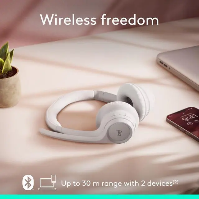 The Logitech Zone 300 is the essential wireless Bluetooth headset with great audio quality for work and downtime. Move freely about your home or office and stay reliably connected with multipoint Bluetooth, up to 30 meters away. Meet with anyone on your preferred calling platform with this Wireless Headset With Microphone. Dual noise-canceling mics on the extended mic boom suppress background sound and allow others to hear you clearly. Enhanced speakers mean you can also hear just as well. With Zone 300, you can seamlessly switch between your computer and your smartphone.