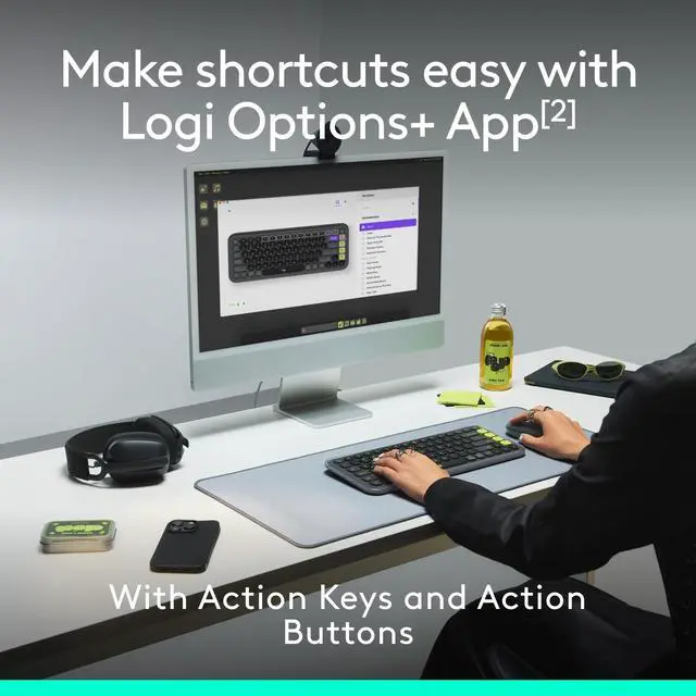 Add an extra POP to your desk with the Logitech POP ICON Combo, a Bluetooth keyboard and mouse combo. This compact wireless keyboard and mouse combo is designed to be different with its stylish, contoured design and customizable Action Keys and Buttons (1). The quiet keyboard features contoured, low-profile keys for comfy, laptop-like typing. Make your life easier with the customizable Action Keys and Action Buttons and the Logi Options+ App (1), where you can switch between work and break modes effortlessly. With the POP Mouse, you can boost your productivity by 30% compared to a trackpad (5) and get where you need to go fast with the Smartwheel speed scroll.