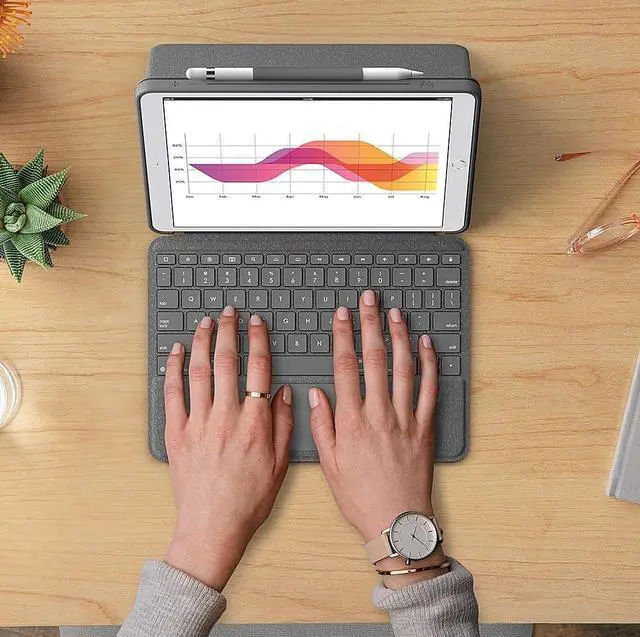 Some ideas just click. Introducing the game-changing Combo Touch trackpad case for iPada case that combines a full-size backlit keyboard with a precision multi-gesture trackpad. Navigate iPad with familiar gestures and easily edit spreadsheets, documents and more. A flexible design with detachable Smart Connector keyboard supports four distinct use modes for extra versatility no matter where you are - a cafe table, desk, or even your lap. The light and durable case keeps iPad protected from bumps and scratches. There's even a convenient spot to stow Apple Pencil (1st gen) or Logitech Crayon.