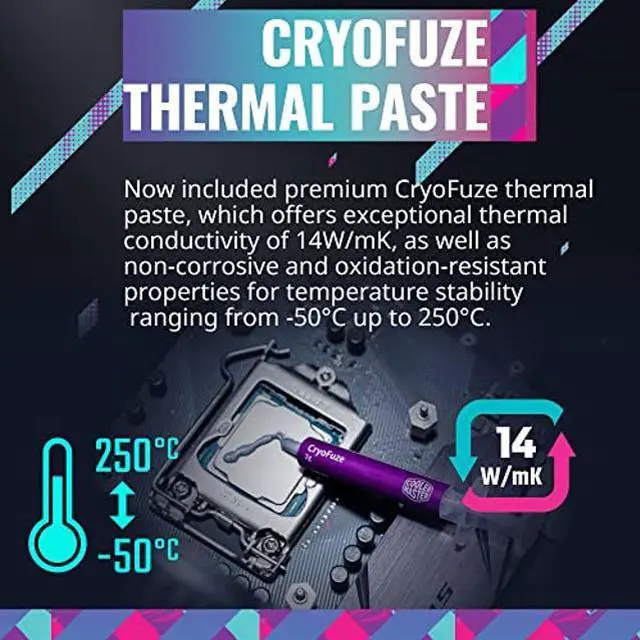 Cooler Master is building upon the success of the MasterLiquid Lite Series with a redesigned and improved release of the MasterLiquid 360L Core ARGB. Featuring the new dual chamber Gen S, water flow and pressure have been enhanced in combination with the new customized copper base to precisely target heat spots. The radiator surface area is larger than before for improved cooling performance. The 360L Core ARGB comes with newly designed 120mm ARGB fans tuned to dissipate heat even more efficiently. The included thermal paste has been upgraded to our premium CryoFuze thermal paste for even better heat conductivity.