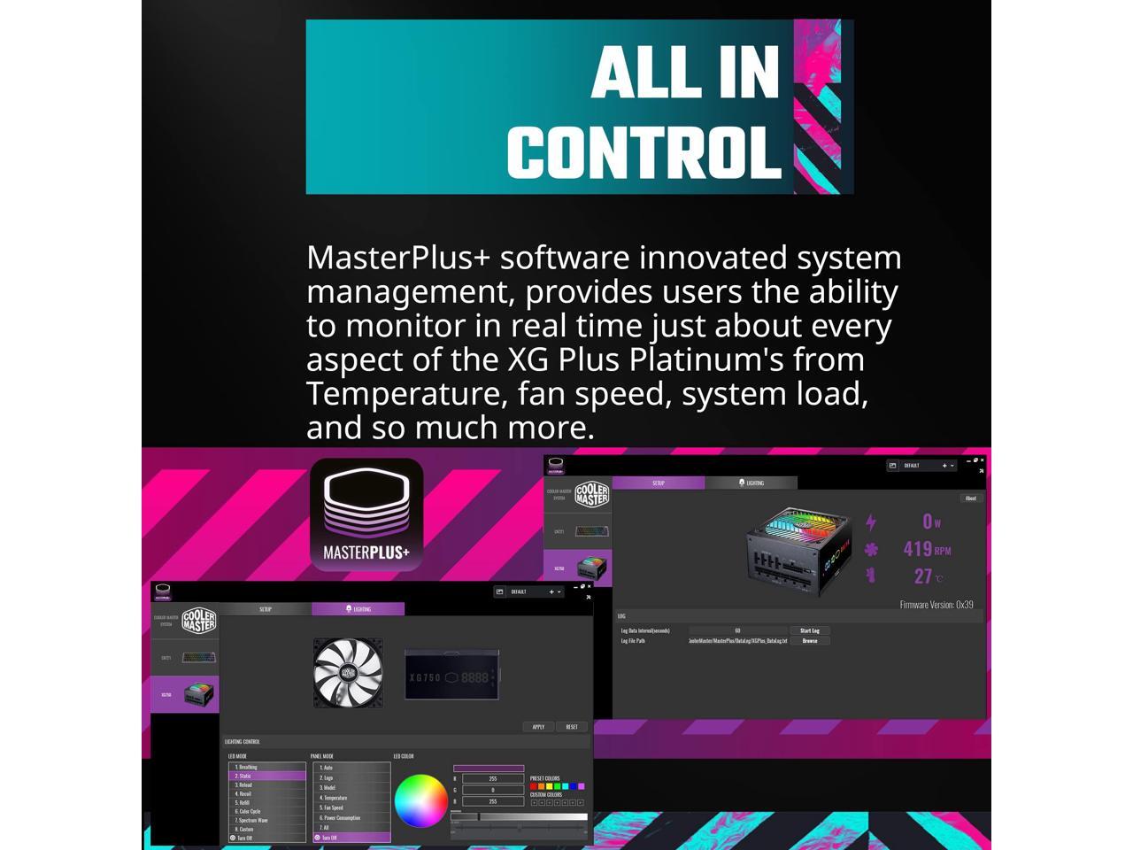 - Cooler Master XG650 Plus Platinum ARGB Fully Modular, 650W, Built-in Information Display Panel, ARGB 135mm Silent Fan, Intel ATX 12V Ver 2.53, 100% Japanese Capacitors (MPG-6501-AFBAP-XUS)