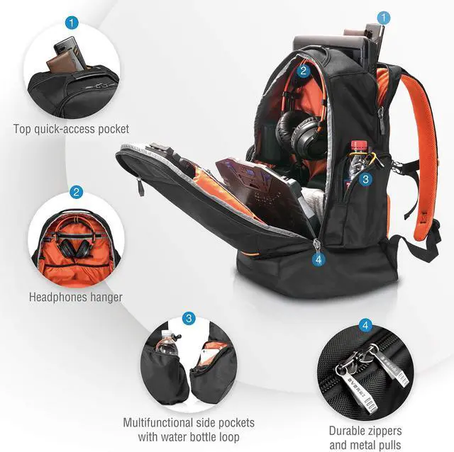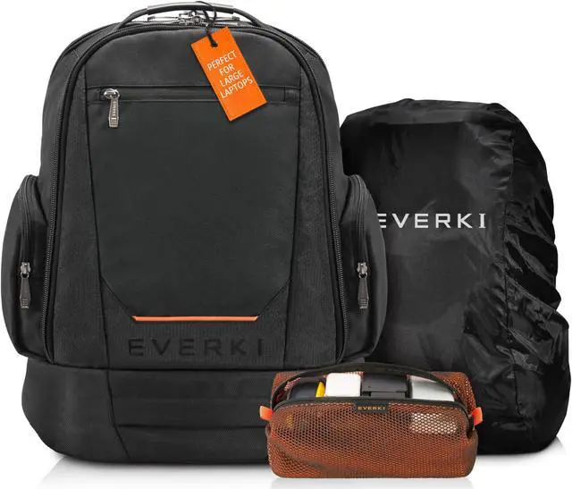Introducing EVERKI's Complete Travel Bundle, thoughtfully designed for modern professionals who refuse to compromise on functionality or style. At the heart of this bundle is the laptop backpack, which offers ample space to carry your laptop and essential work items securely and comfortably. This versatile backpack is paired with both a durable black rain cover and a vibrant orange accessory pouch. Together, they provide comprehensive protection and organization, ensuring your gear stays dry and secure during rainy commutes, business trips, or travel adventures. With this reliable combination, you can focus on what truly mattersyour work and success.