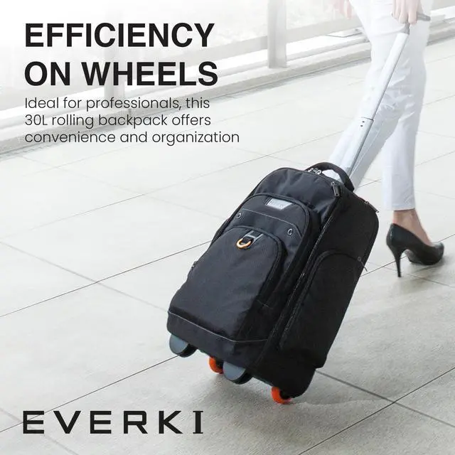 COMFORTABLE AND ERGONOMIC DESIGN: The smooth-rolling wheels and retractable handle make this laptop backpack ideal for easy maneuverability through busy airports. The padded back and adjustable straps offer added convenience for professionals carrying heavy loads during long travels. ^^ IDEAL FOR FREQUENT FLYERS AND ROAD WARRIORS: This rolling backpack is tailored for IT experts, field engineers, and consultants. With its carry-on size and practical design, its excellent for professionals who travel often, keeping laptops and work tools organized and easily accessible. ^^