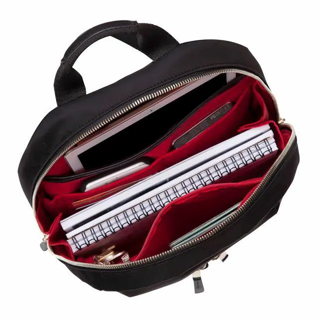 Slim Straps: Crafted from high-density, splash-proof nylon with premium leather touchpoints, this bag weighs just over 1 lb. It features sleek, slim adjustable straps that offer a refined, feminine look without the bulk of padded hiking straps, while the water-resistant body ensures your essentials stay dry.