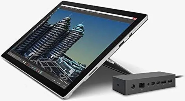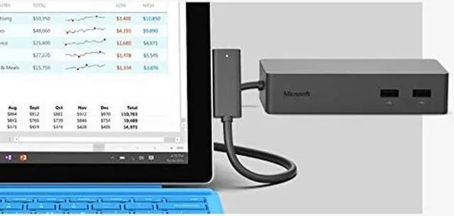 Get right to work Instantly transform your Surface into a desktop PC. Plug in the Surface Connect cable to charge your device and access external monitors, keyboard, mouse, and more. Find the perfect viewing angle, or position your device to take advantage of the robust pen capabilities. All the ports you need With two high-definition video ports, a Gigabit Ethernet port, four high-speed USB 3.0 ports, and an audio output, you've got all the connections you need in a sleek, compact design. Lightning fast with minimalist design Surface Dock uses Surface Connect technology which enables high-speed transfer of video, audio, and data over a single cable, keeping your desk clutter-free.