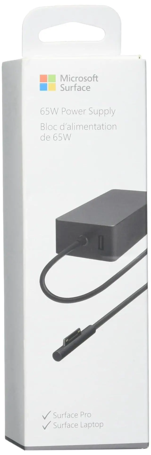 Made exclusively for Surface* and designed to match its look and feel, the 65W Power Supply quickly recharges the battery, while the USB port lets you charge another device at the same time