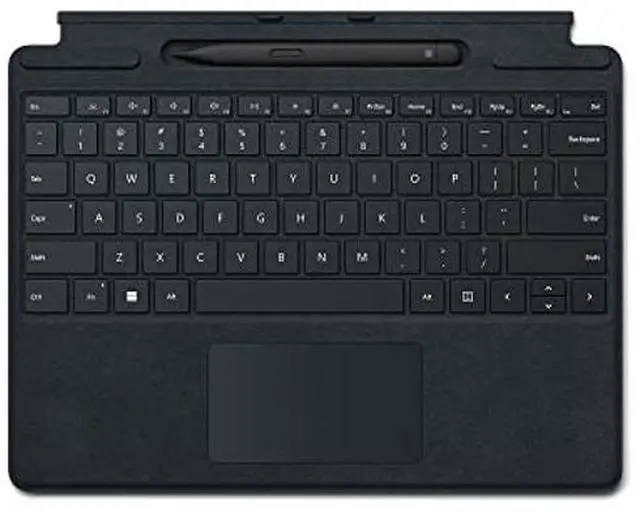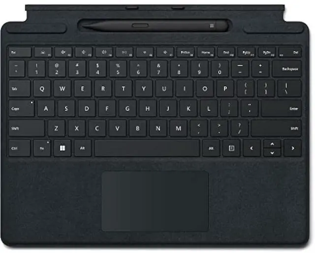 Store, charge, type, and write. Next-level versatility comes in the perfect, premium keyboard, featuring a large glass trackpad and luxurious, Alcantara material covering. Ready to pair with Surface Pro 8 and Surface Pro X.