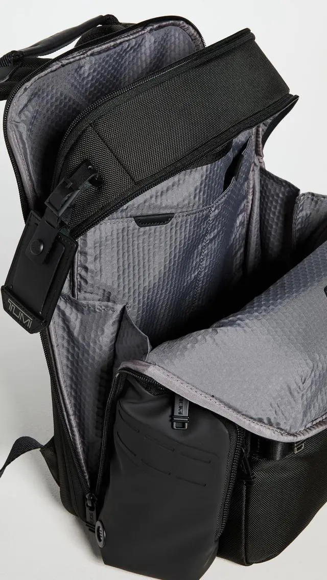 Modern backpack for everyday use. Ideal for work or travels featuring multiple organizing pockets, padded tablet pocket, and TUMI tracer