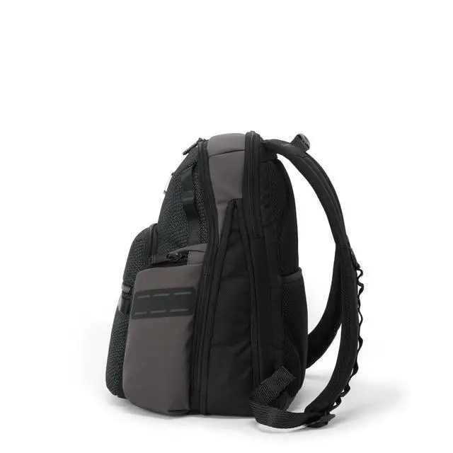 The interior is designed with ample organizational pockets, including dedicated spaces for cards and media devices, ensuring everything stays in place. Additionally, the exterior of this tech backpack is just as impressive, with multiple zippered pockets, a water-resistant lining, and an air vent for practicality and ease. The commuter's comfort is paramount, and this backpack delivers with a padded mesh back panel and adjustable shoulder straps, ensuring your travels are as stress-free as possible. For those needing extra space, the expandable zip feature and the TUMI Tracer system turn this backpack into a versatile travel bag, ready to adapt to any packing requirements.