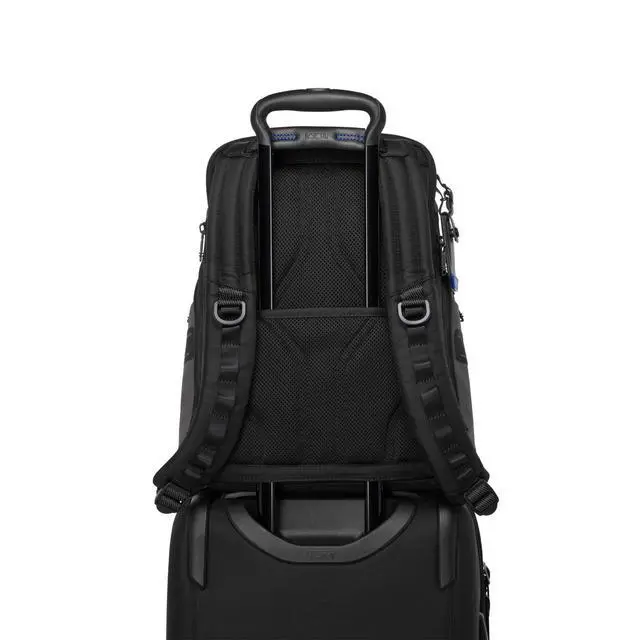 DescriptionTravel comfortably and in style with the TUMI Alpha Bravo Navigation Backpack, the ultimate backpack whether you're commuting to the office or embarking on a weekend adventure. Designed to serve as your dependable everyday backpack, this piece marries modern design with unmatched functionality. Crafted from TUMI's signature ballistic nylon, it boasts a heavy-duty construction that ensures durability without sacrificing sleekness or style. As a top-tier travel laptop backpack, it features a specialized compartment that provides a secure fit for up to a 15 inch PC or a 16 inch MacBook, making it an ideal laptop bag for tech-savvy travelers.