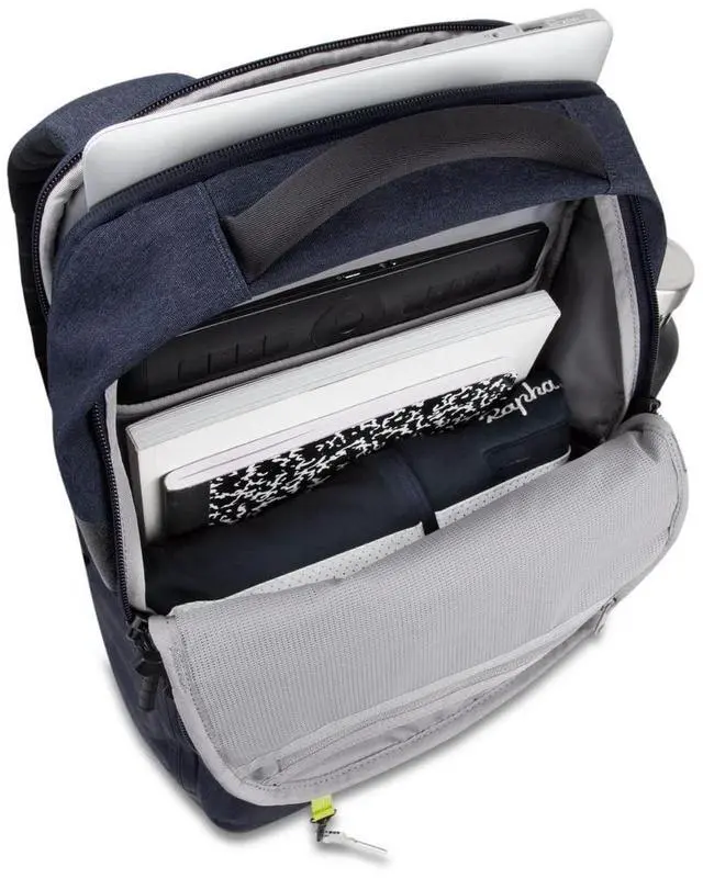 KEEP IT ORGANIZED: Back padded laptop compartment fits up to a 15" laptop; Rear access to laptop pocket keeps your device protected while giving more space in the main compartment for other stuff; Internal mesh zip pocket; Large main compartment fits books, lunch, and a light jacket; Side stretch pocket for water bottle