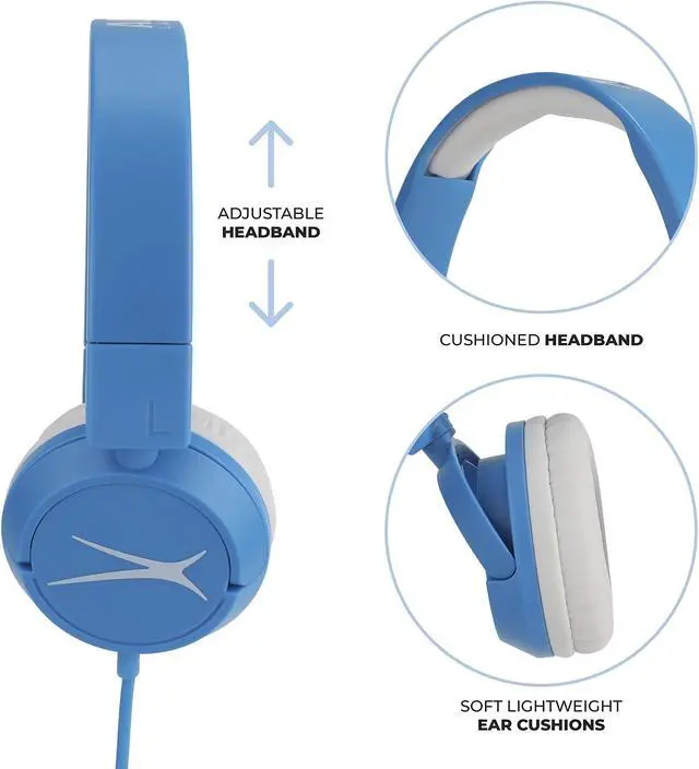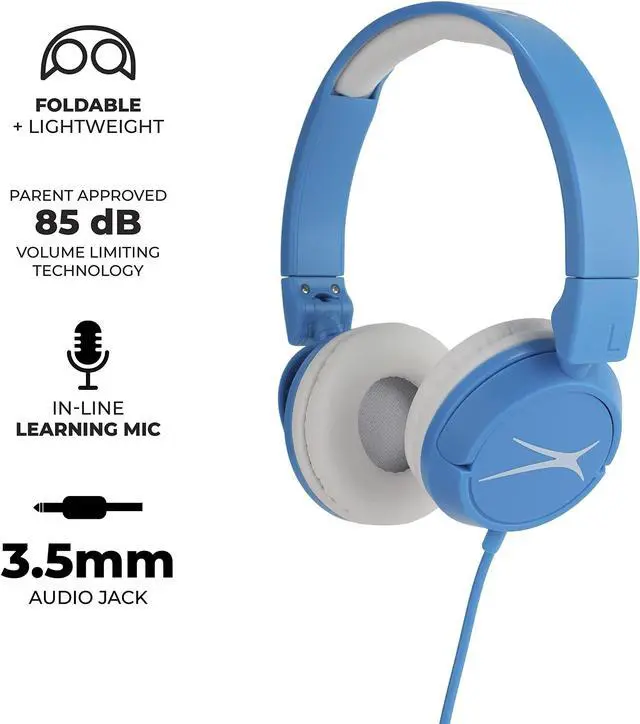 Altec Lansing Over The Ears Kids Headphones - Volume Limiting Technology for Developing Ears, Ages 6-9, Perfect for Learning from Home, Blue