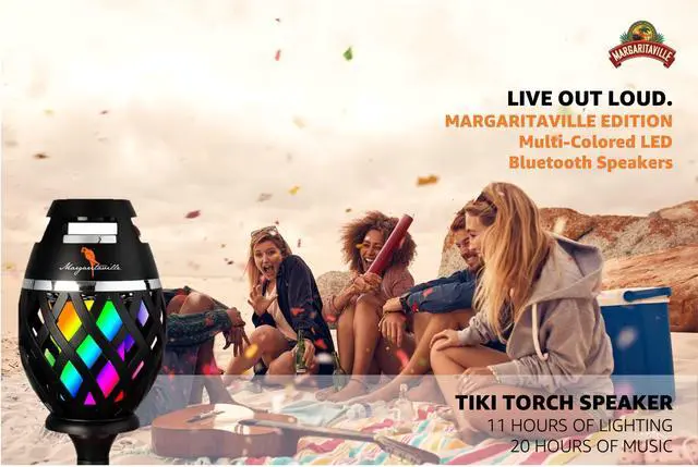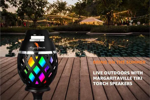 Enjoy The Tunes You Love In Style With Margaritaville Tiki Torch Portable Bluetooth Speaker! Our outdoor speakers are made using a tiki torch design thats reminiscent of beach nights and bonfires. It'll add a decorative touch to any indoor or outdoor space while providing clear, crisp, and deep audio to ensure its just the right fit for your favorite songs. Thanks to the included pole, you can easily set up the portable speakers in your outside space to double as outdoor patio decor or as an eye-catching centerpiece on your tables or shelves.