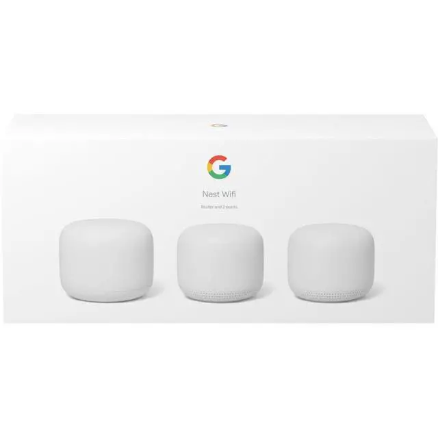 Google Nest WiFi - AC2200 (2nd Generation) Router and Add On Access Point Mesh Wi-Fi System (3-Pack, Snow)
