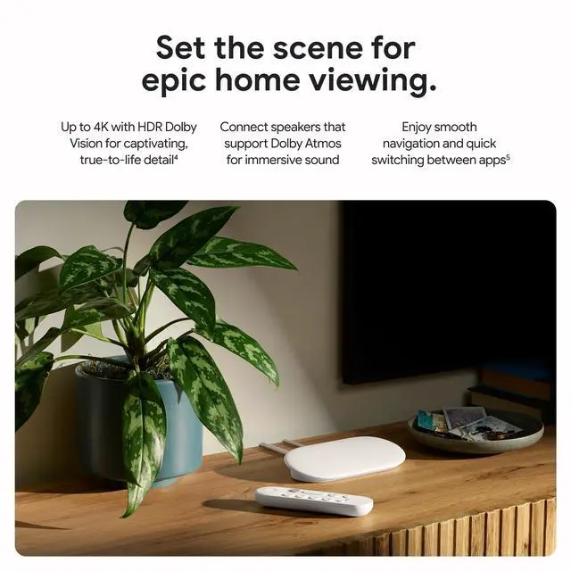 The Google TV Streamer (4K) delivers your favorite entertainment quickly, easily, and personalized to you. [1, 2] Get fast performance, responsive navigation, and tailored recommendations from Googles most advanced streamer yet. And all your content is organized in one place so youll do a lot less searching and way more watching.