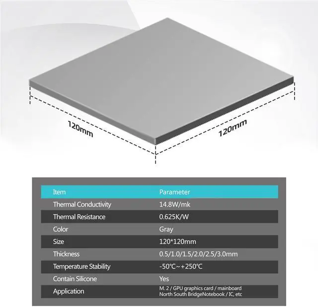 ^^ Convenient & Affordable: Dimension 120x120x 3.0 mm, these thermal pads can be cut freely according to your needs. one pieces of 3.0 mm/set can meet different needs.