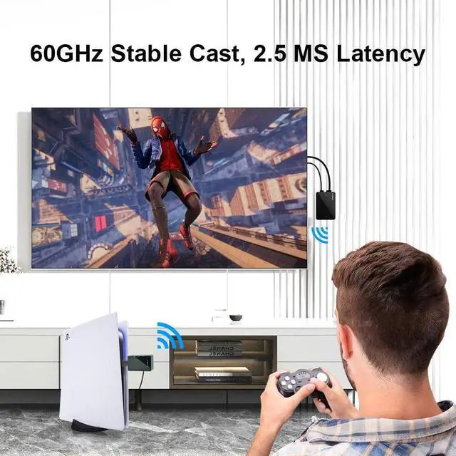 [(Break the Mold of HDMI Cables)] : PeakDo Wireless HDMI Transmitter and Receiver 4K can wirelessly stream audio/4K video from laptop, PC, TV box, PS5, PS4, Xbox, Camera to HDTV, projector, monitor up to 100FT/30M transmission range. No more messy HDMI cables all over home or office. Weighing only 0.3 kg/0.66 lbs, the upgraded 4K wireless HDMI extender kit can be easily held in one hand. Compared to a heavy 100ft HDMI cable, you can take it anywhere! Ideal for home theatre, gaming, meeting, speech, outdoor cinema.